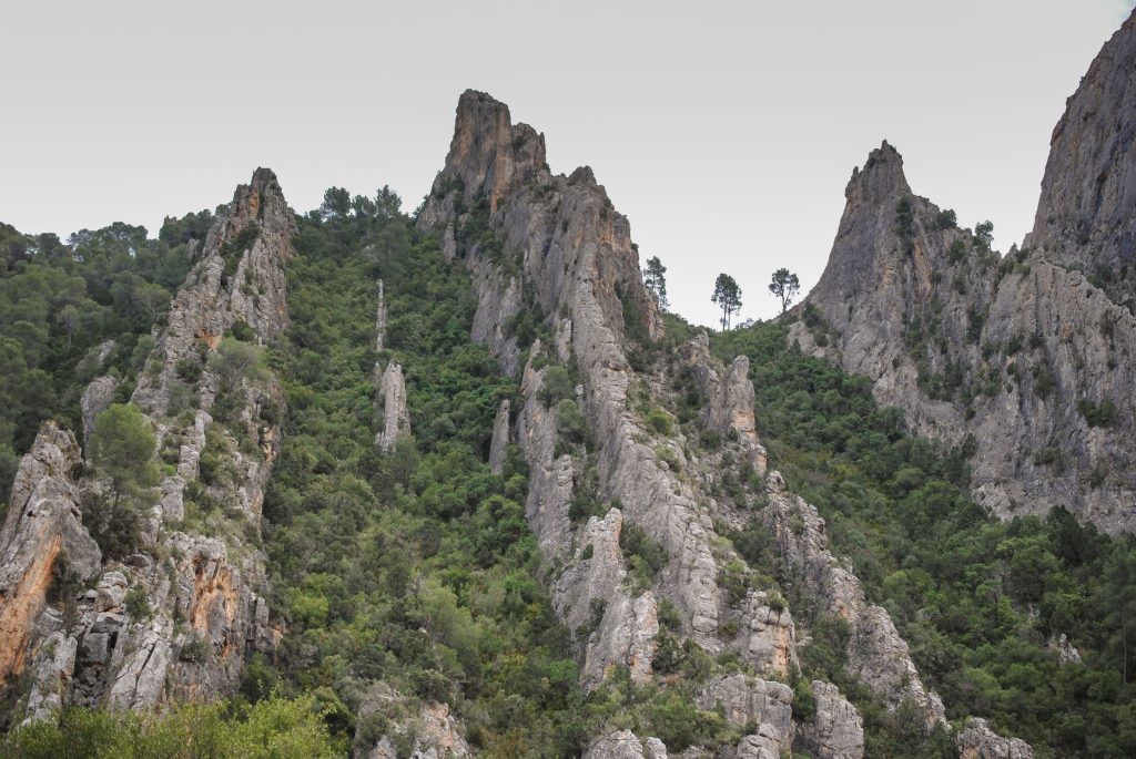 El territorio del Valle del Cabriel presenta una geología de gran interés científico y paisajístico, articulada por la acción milenaria del río Cabriel sobre materiales sedimentarios y carbonatados del Cretácico superior, que han dado lugar a formaciones escarpadas y únicas en su tipo. En los tramos encajados del río destacan los cortados y farallones calizos que conforman las icónicas Hoces del Cabriel, así como las crestas verticales conocidas como Los Cuchillos, modeladas por la erosión diferencial de las rocas más resistentes frente a las más blandas. Estos relieves han sido reconocidos como Lugar de Interés Geológico por su singularidad y valor didáctico.